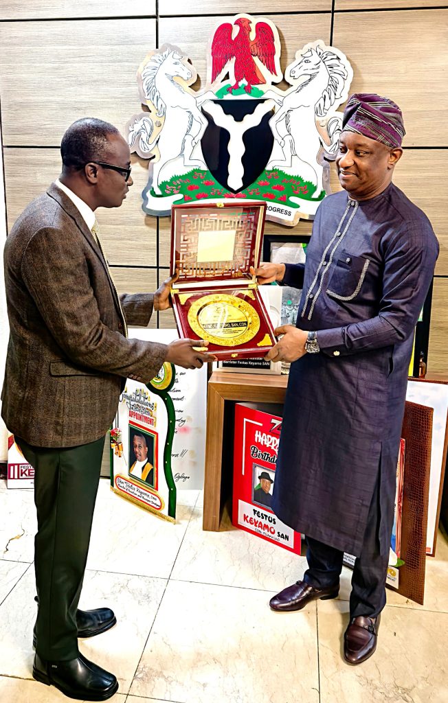 The leadership of the union representing former employees of the defunct Nigeria Airways, recently honoured the Minister of Aviation and Aerospace Development, Mr Festus Keyamo (SAN), for his dedicated advocacy in securing the long overdue retirement benefits.